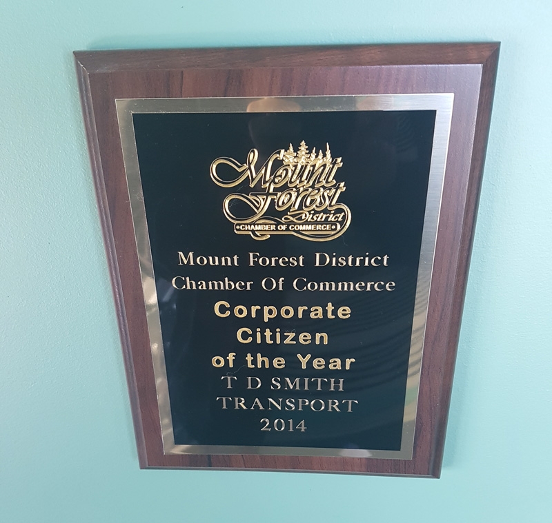 Our T.D. Smith Transport family is pleased to accept the Mount Forest District Chamber of Commerce Corporate Citizen of the Year award for 2014. One of our driving values is to give back to the community in which we live, and we are … Read more